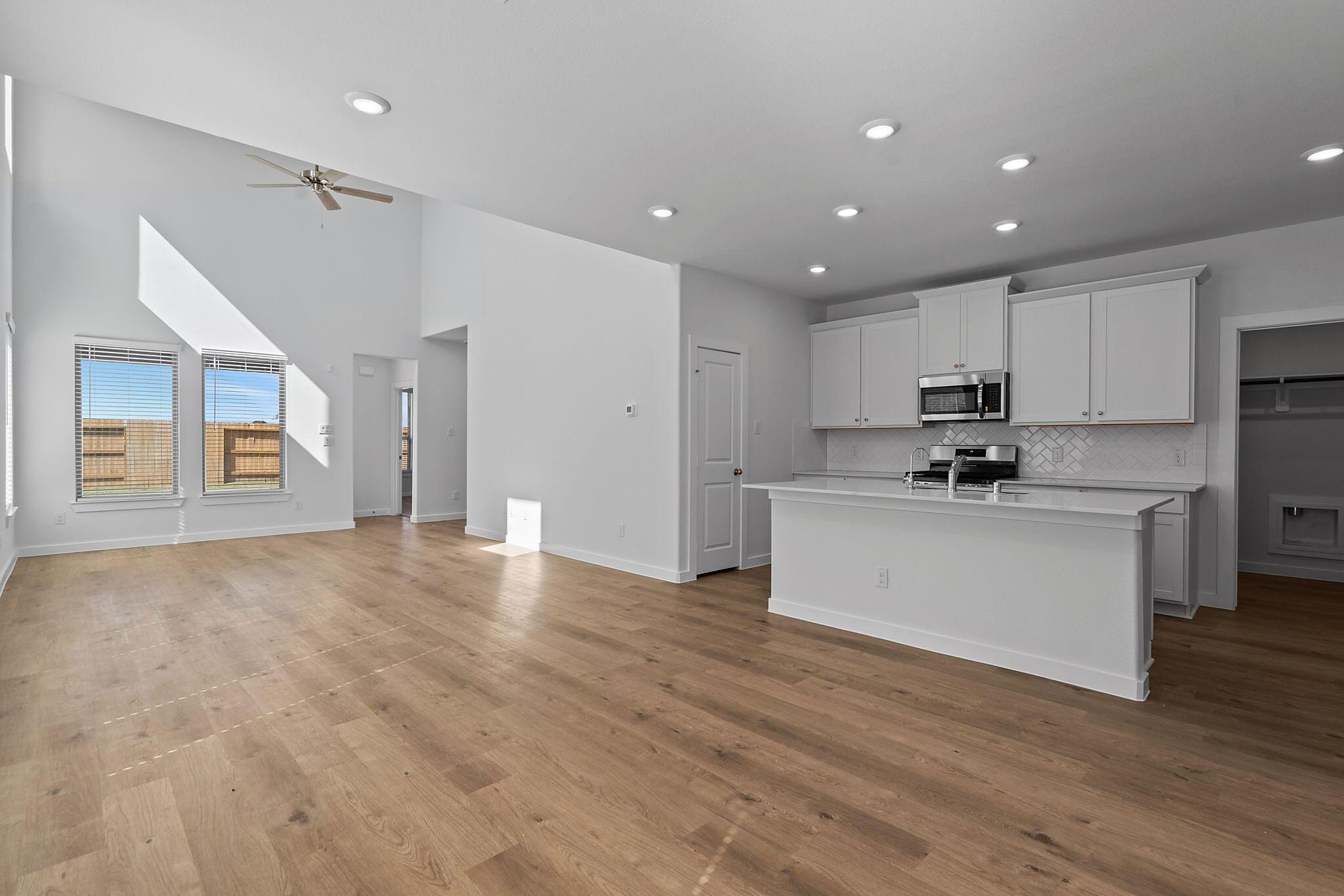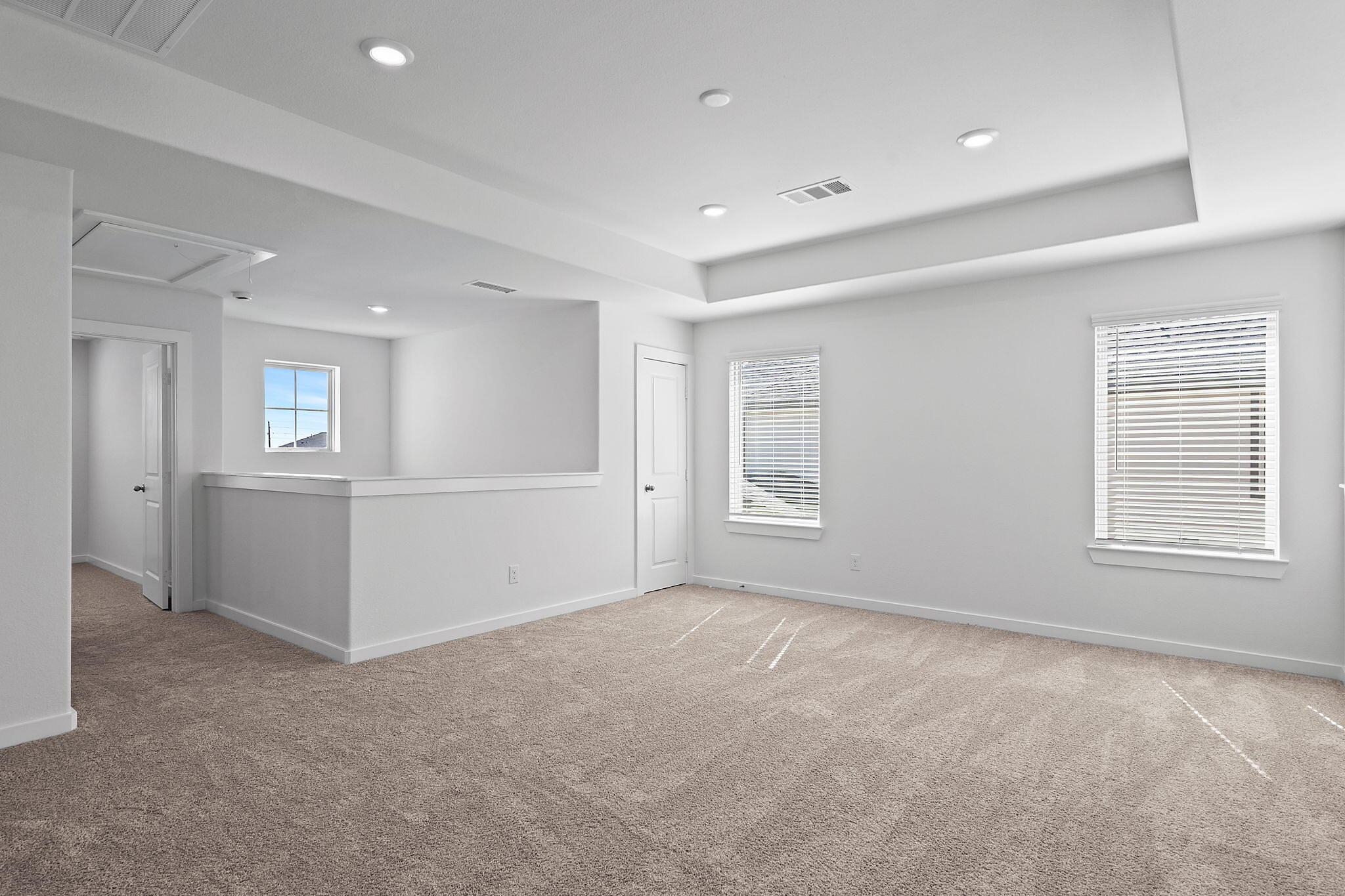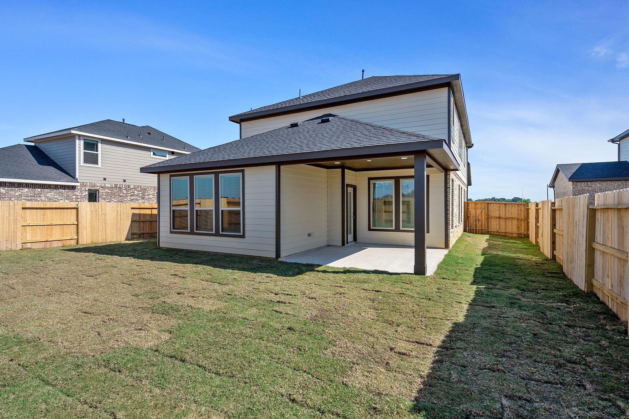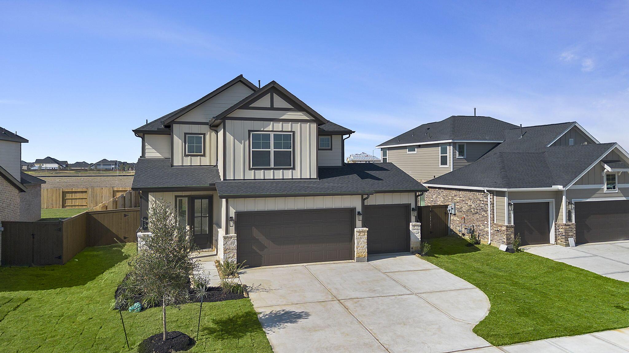 This beautiful 2-story plan features 4 bedrooms, 2.5 bathrooms, and an open-concept dining and family room. The kitchen is adorned with 42-inch cabinets and an abundance of counter space. Additional entertainment is made with ease in the oversized game room upstairs or out on the covered patio. The primary retreat offers a spa-like ensuite and a spacious walk-in closet, connected to the laundry room for your convenience.