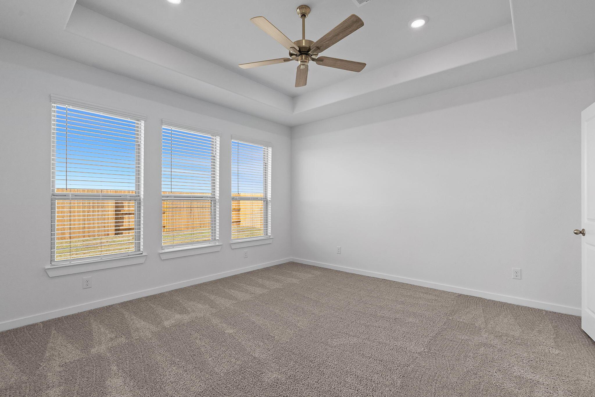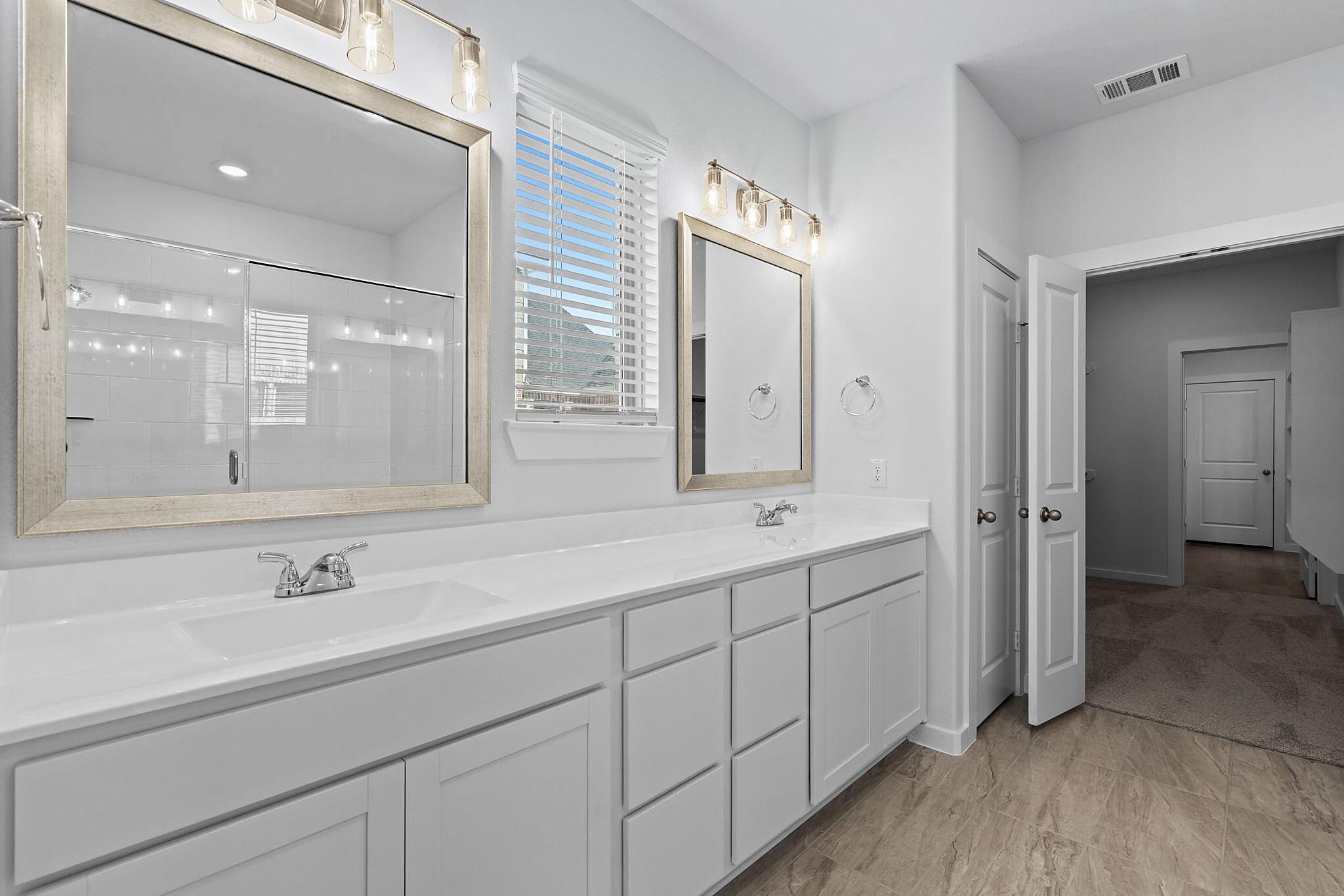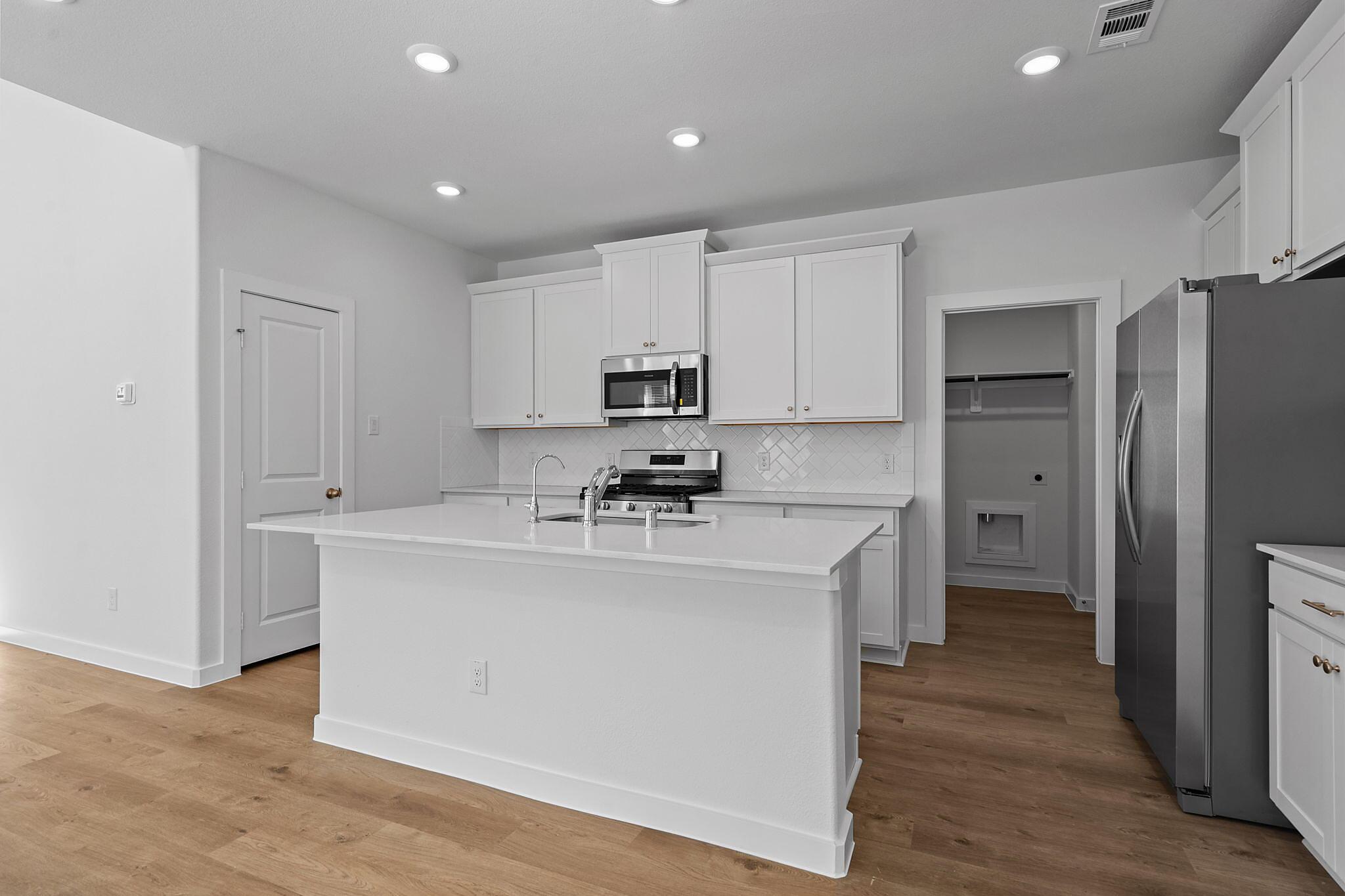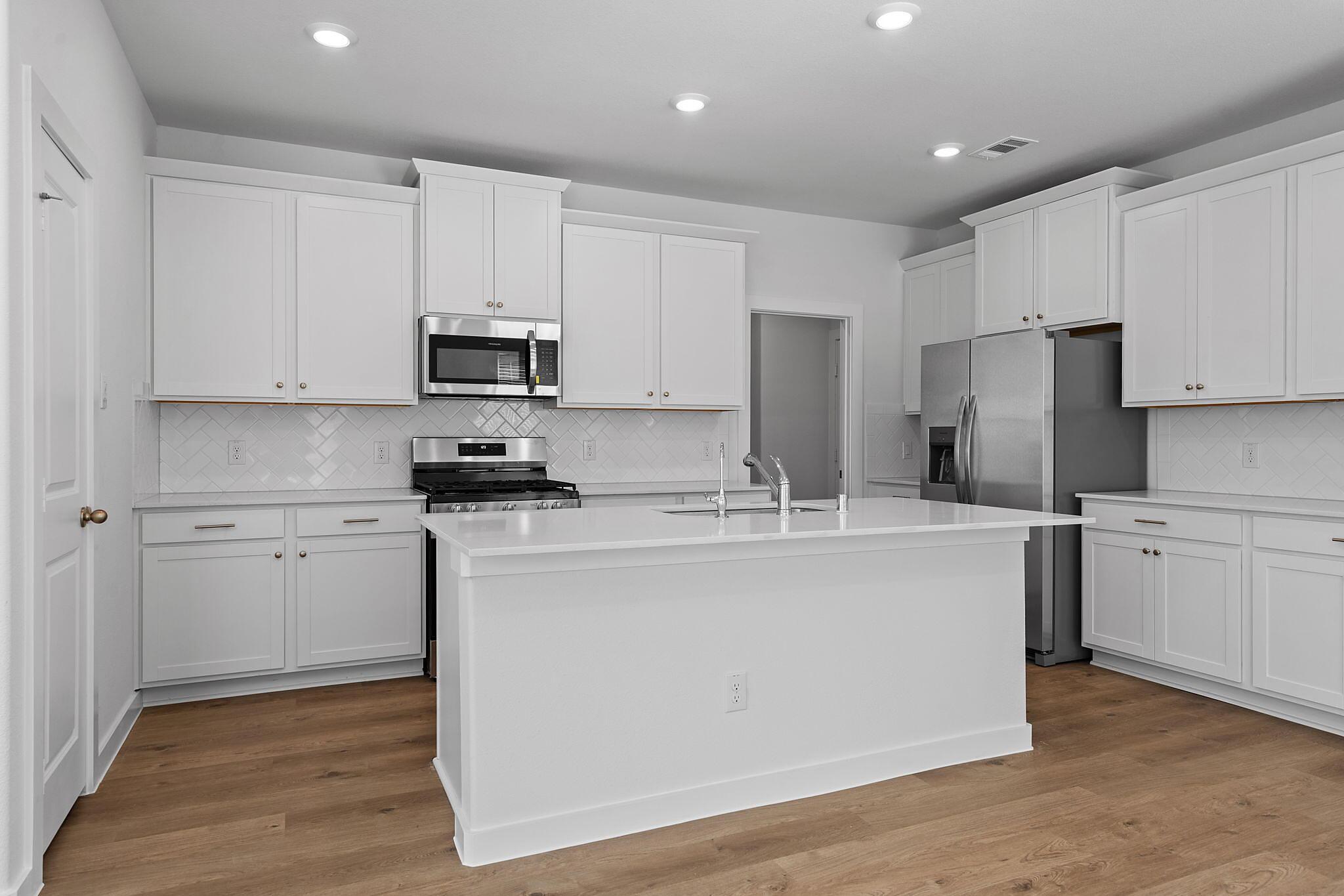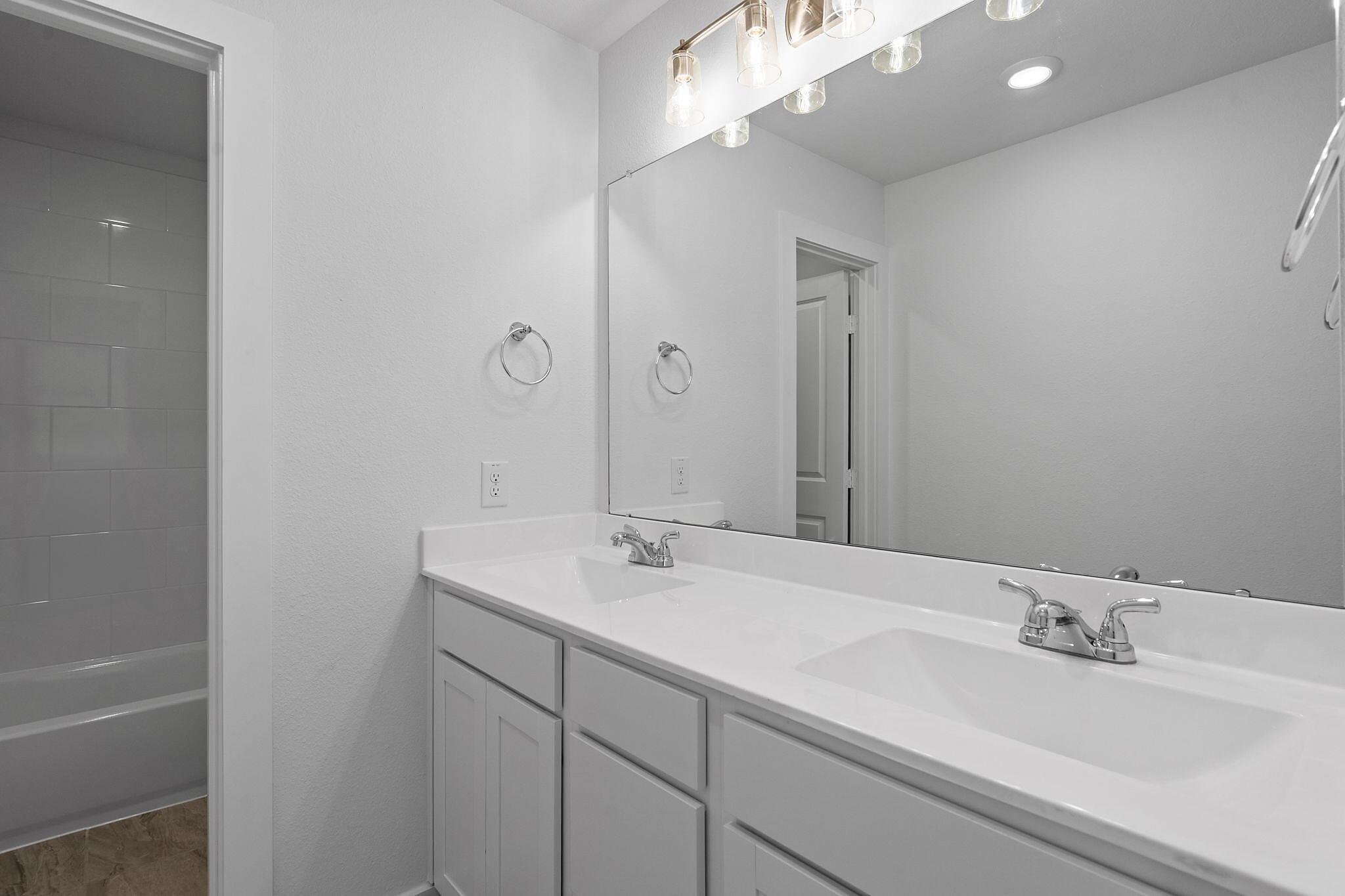 This beautiful 2-story plan features 4 bedrooms, 2.5 bathrooms, and an open-concept dining and family room. The kitchen is adorned with 42-inch cabinets and an abundance of counter space. Additional entertainment is made with ease in the oversized game room upstairs or out on the covered patio. The primary retreat offers a spa-like ensuite and a spacious walk-in closet, connected to the laundry room for your convenience.